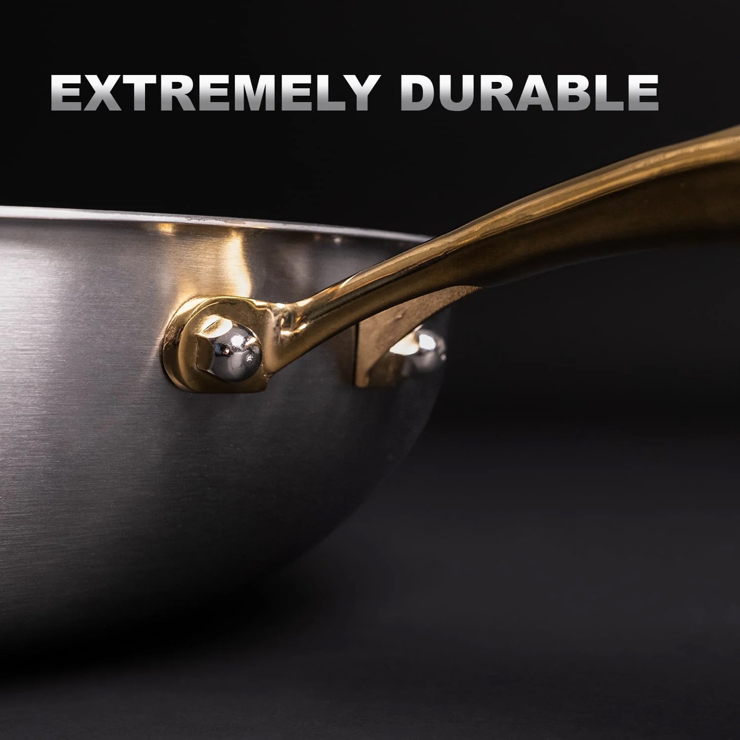 Our three-layer construction with aluminum core and hardened steel exterior provides lightning-fast heating and perfectly even temperature distribution. This eliminates hot spots and ensures consistent cooking results from edge to edge of the pan.